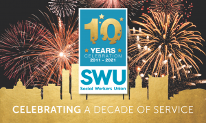 Joseph Llewellyn of the University of Gloucestershire said: “Registering with BASW and SWU was one of the first things I did after securing a place to study Social Work at the University of Gloucestershire. It’s been great to learn more about SWU’s history over the past several days. A big thank you to SWU for selecting my assignment as one of the four winning entries, and congratulations to the union and all its members on a successful 10 years!”