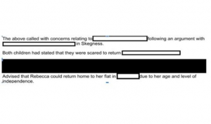 No further action seems to be the common response, as seen in case note 6. After I called you in distress 200 miles away from my unregulated placement, you advised I could return alone due to my ‘age and independence’. No follow up was ever given to see if I was okay.